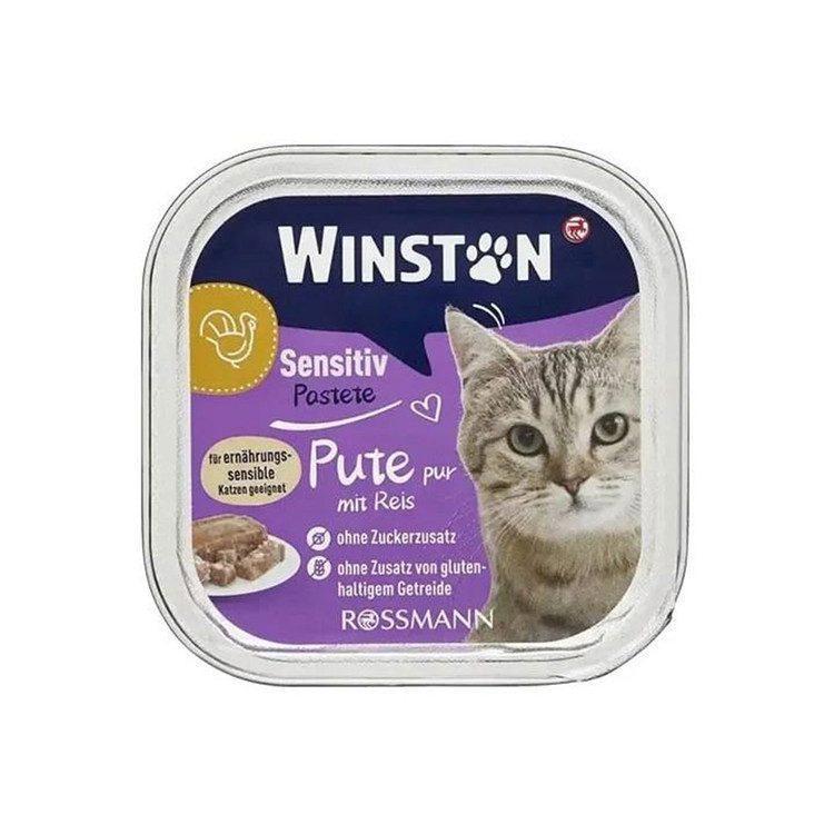 ووم گربه سنستیو برند وینستون با طعم گوشت بوقلمون و برنج